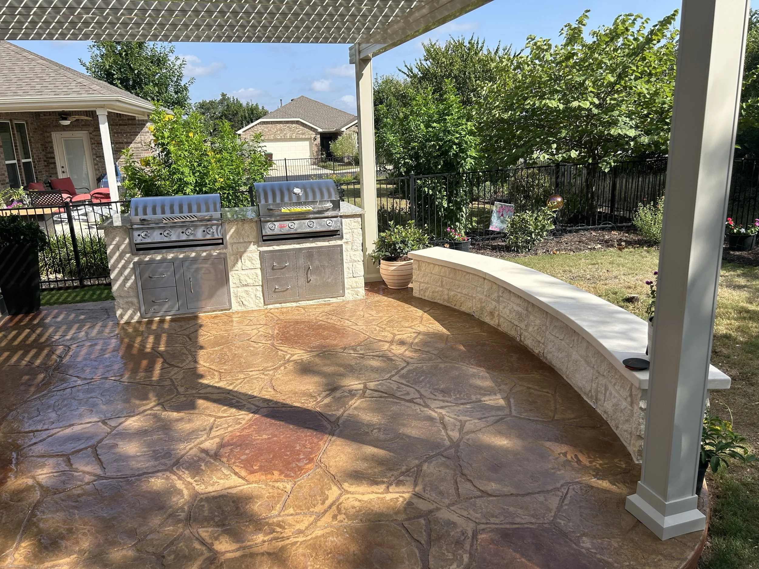 Custom patios, walkways, fire pits, retaining walls, and outdoor kitchens.